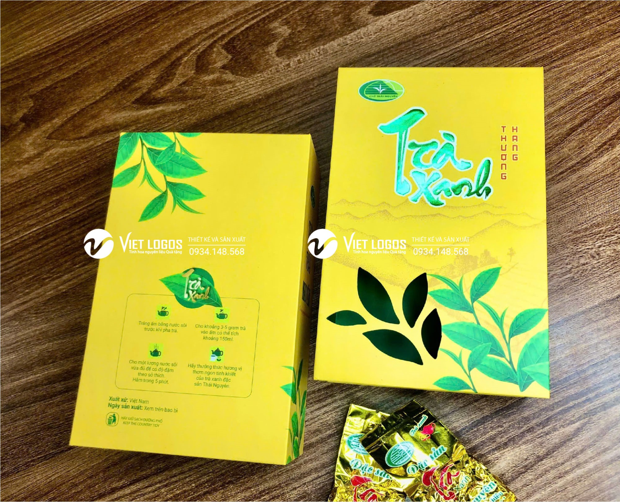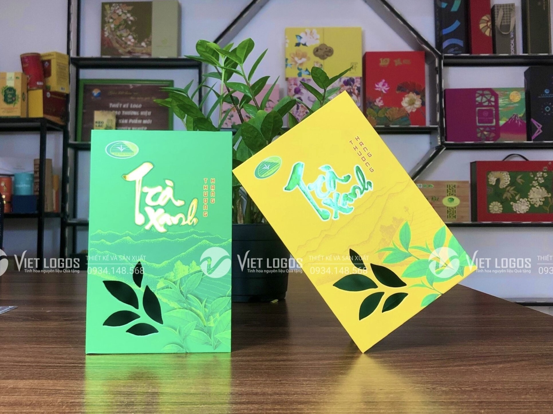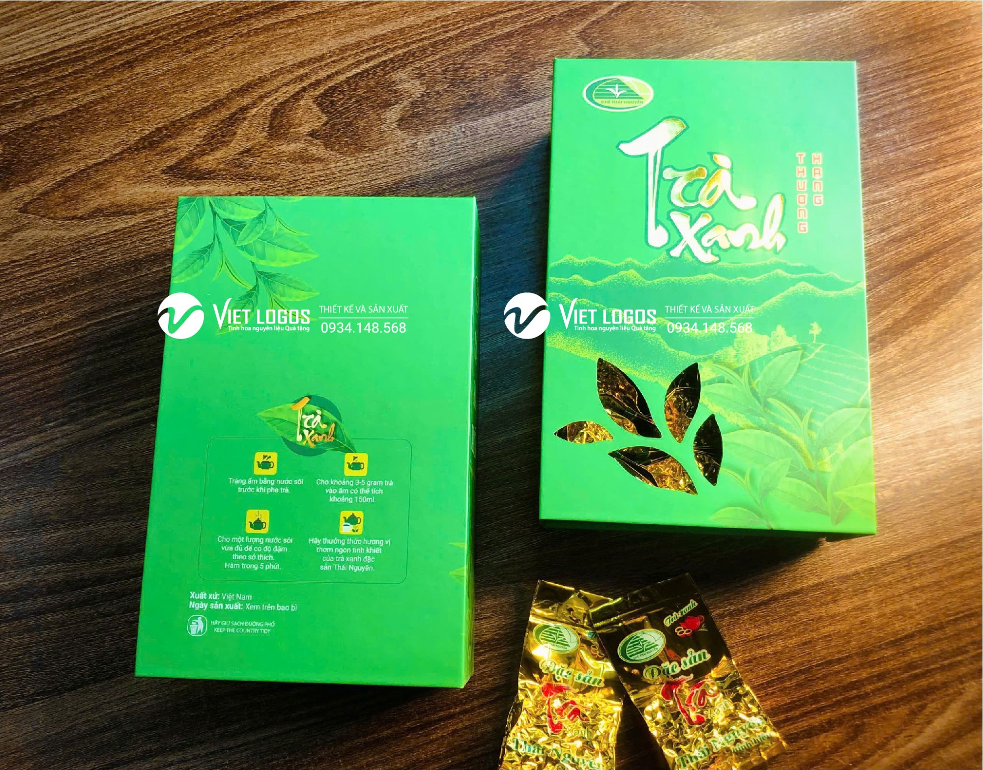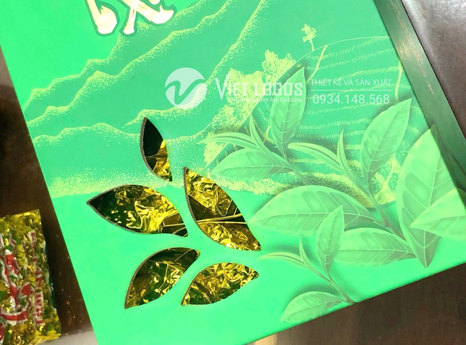 📍Chữ "Trà xanh" được ép nhũ tinh tế, tạo hiệu ứng sáng bóng, lấp lánh, sang trọng, cực kỳ thu hút.